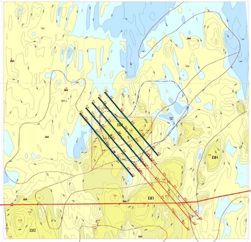 勘查區(qū)主要出露侏羅系火山巖、石炭紀(jì)花崗巖、燕山期侵入巖,1:1 萬(wàn)物化探異常套合好,針對(duì)DJ1激電異常,挖了2個(gè)探槽,見(jiàn)鉛鋅礦化,打2鉆未見(jiàn)礦。DJ1激電異常僅驗(yàn)證了個(gè)別部位,其余部位以及另外4個(gè)激電異常都未驗(yàn)證,總體面積較大,仍有進(jìn)一步工作的必要。