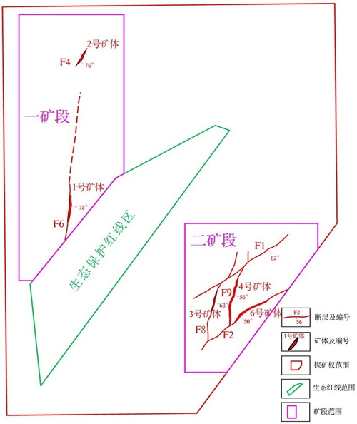 4.根據綜合分析,礦區 2 礦段區域次級構造發育,且礦化體較多,推測其深部有可能存在規模相對較大的成礦構造;近南北向斷裂在南北兩端均由第四系覆蓋,其延伸方向上亦存在成礦可能性。